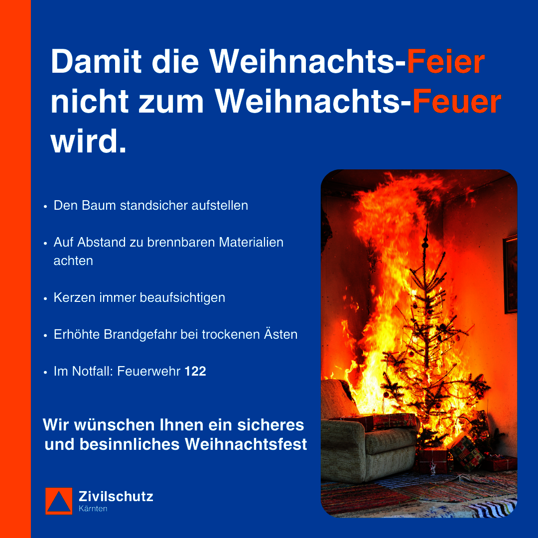 • Unter den Christbaum sollte eine schwer entflammbare Unterlage gelegt werden. Eine Löschdecke sollte griffbereit gehalten werden.