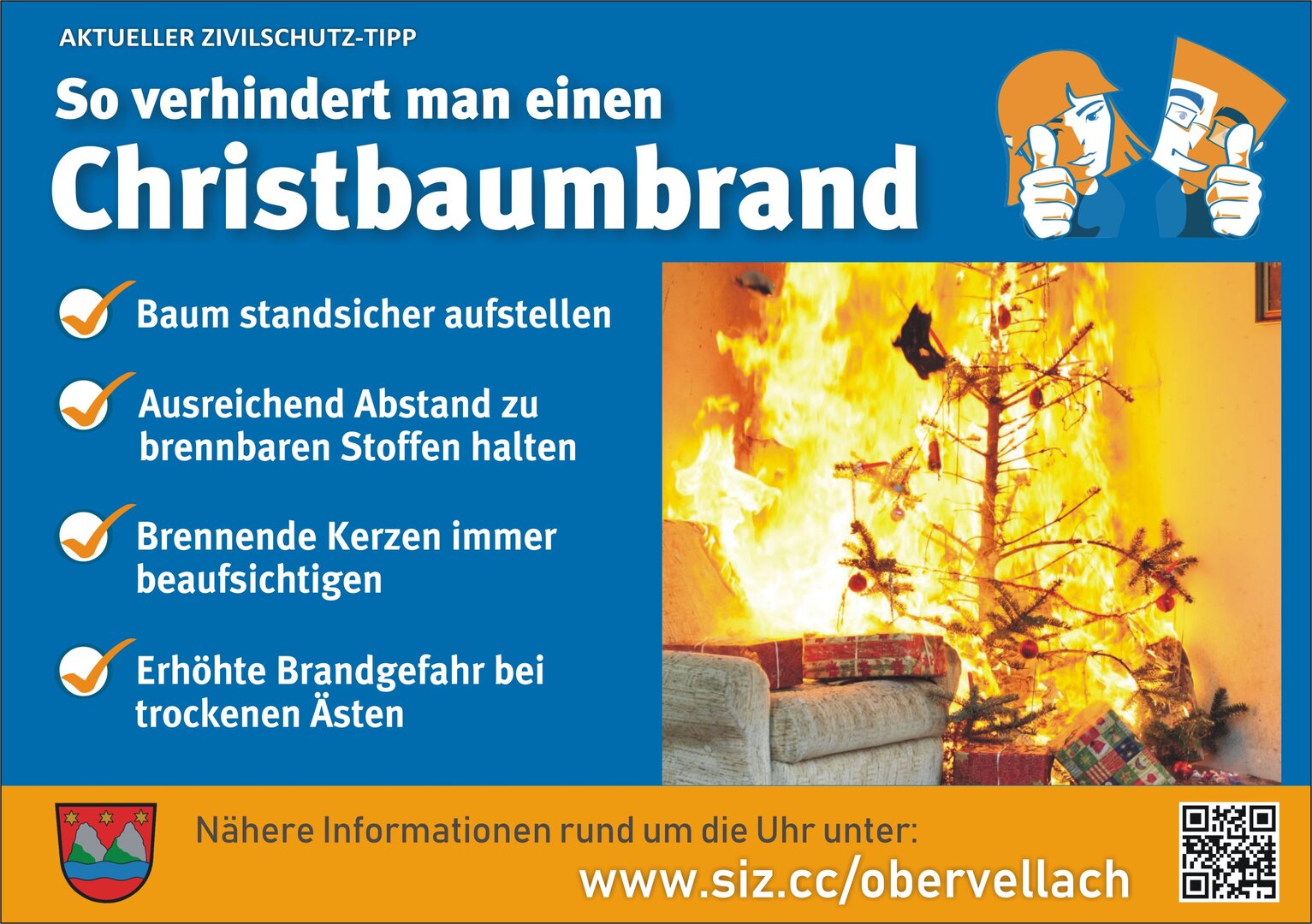• Wichtig ist es, den Christbaum standsicher aufzustellen und den Standort so zu wählen, dass genügend Abstand zu leicht brennbaren Materialien (Vorhängen, Möbelstoffen) vorhanden ist.