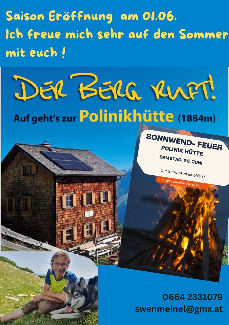 Zum Sonnwendfeuer wird bei der Polinikhütte herzlich eingeladen.