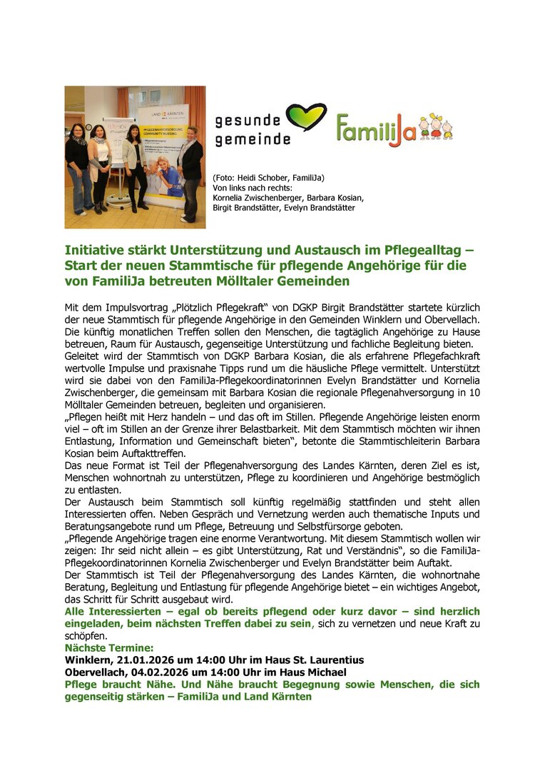"Einander zuhören - miteinander reden - voneinander profitieren" - der neue Stammtisch lädt alle pflegende und betreuenden An- und Zugehörigen zu einem unverbindlichen Kennenlernen ein.